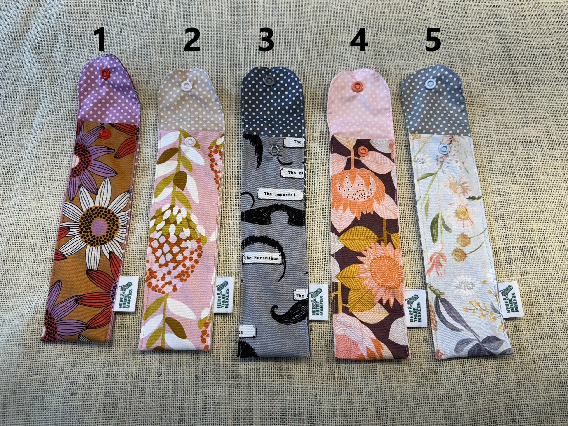 These handy and stylish pouches are great for keeping a knife & fork or spoon in for travelling.  Made from natural material.