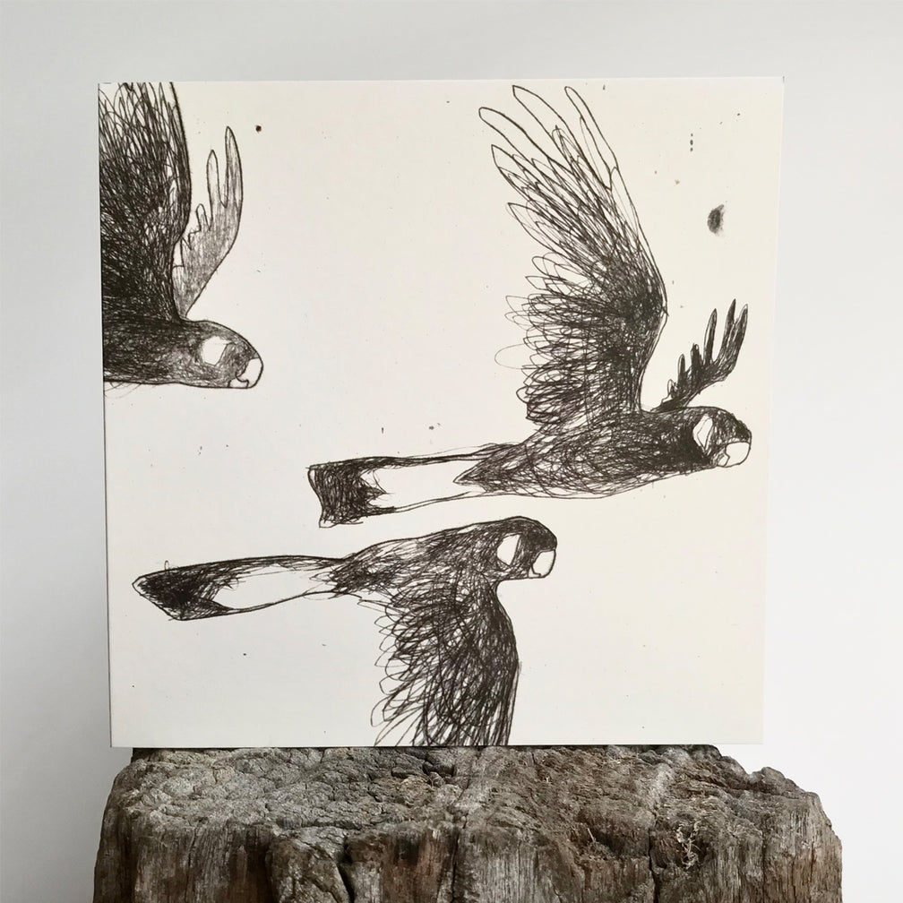 These greeting cards feature images of native Australian birds, either illustrated or etched by artist, Bridget Farmer.
