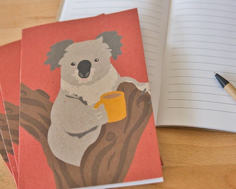 This 56 page, A5 lined notebook is made from 100% post-consumer recycled materials. This notebook has a 320gsm boxboard cover, each featuring a beautiful animal illustration.
