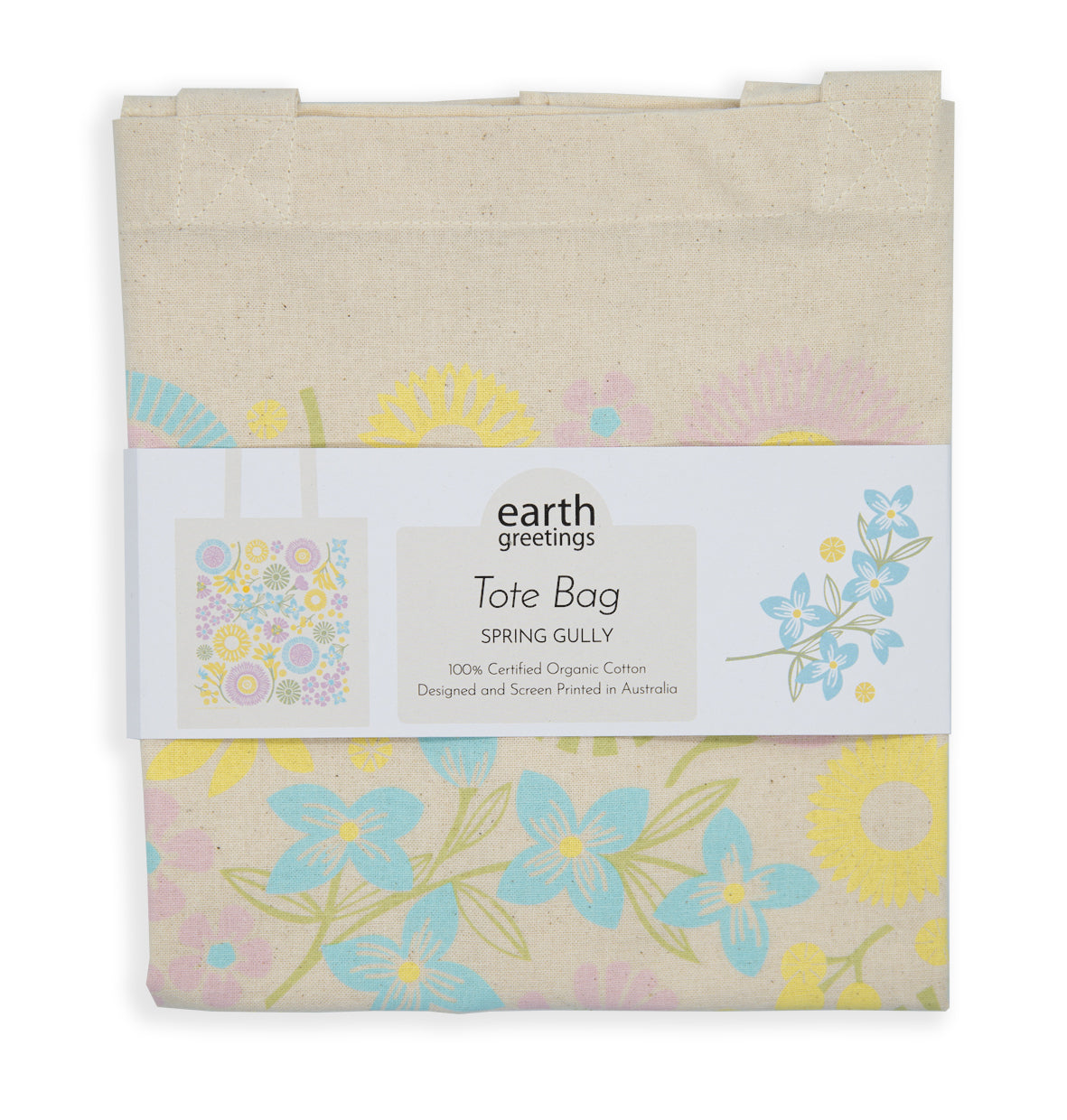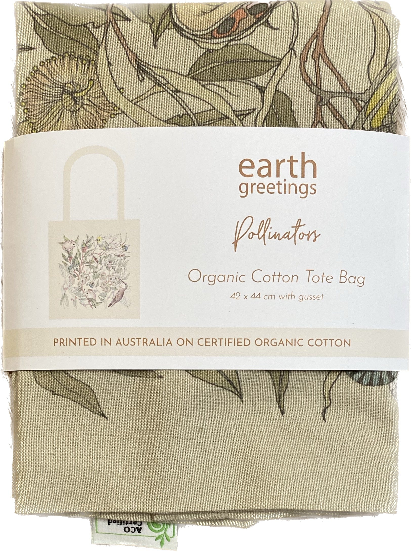 Soft and durable, our tote bags are made in India from certified organic, unbleached cotton. The artwork was designed and screen printed in Australia using water-based ink.